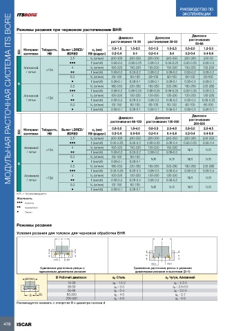 Условия резания для головок для черновой обработки BHR