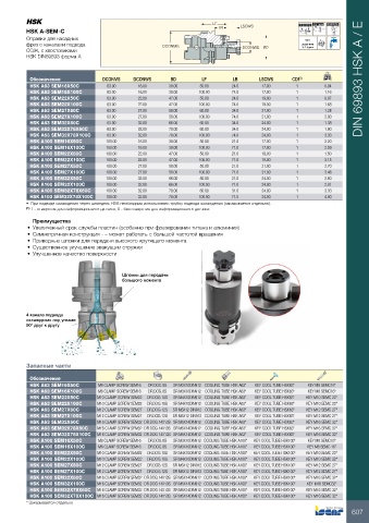 Обозначение DCONMS DCONWS BD LF LB LSCWS CDI (1) kg DIN 69893 HSK A / E