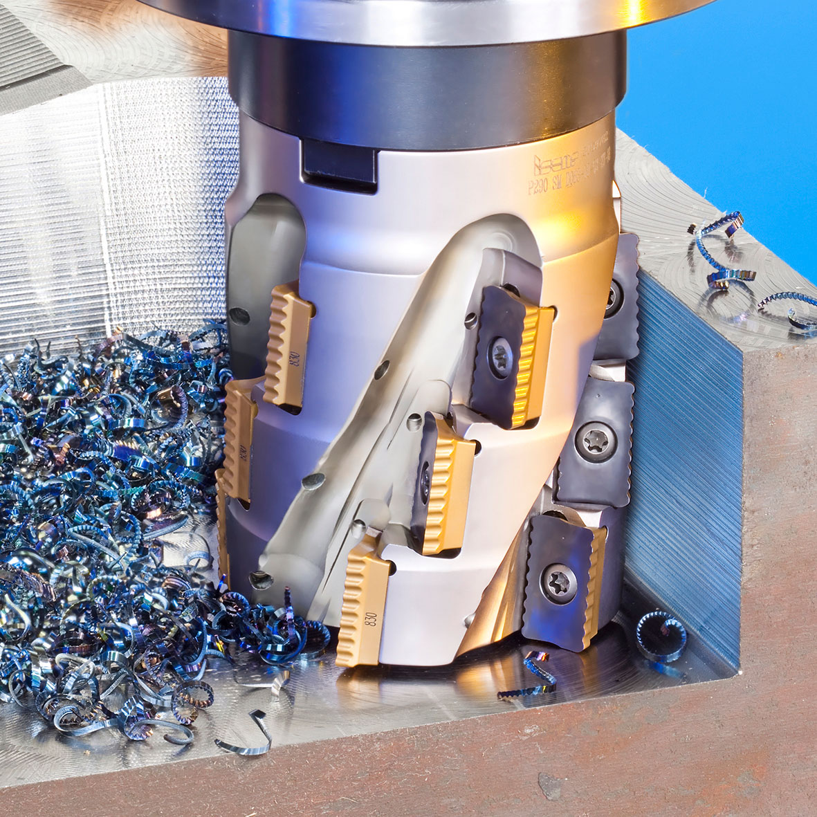 Chip-splitting geometry of MILLSHRED indexable milling cutters provides high stable milling and better chip handling.