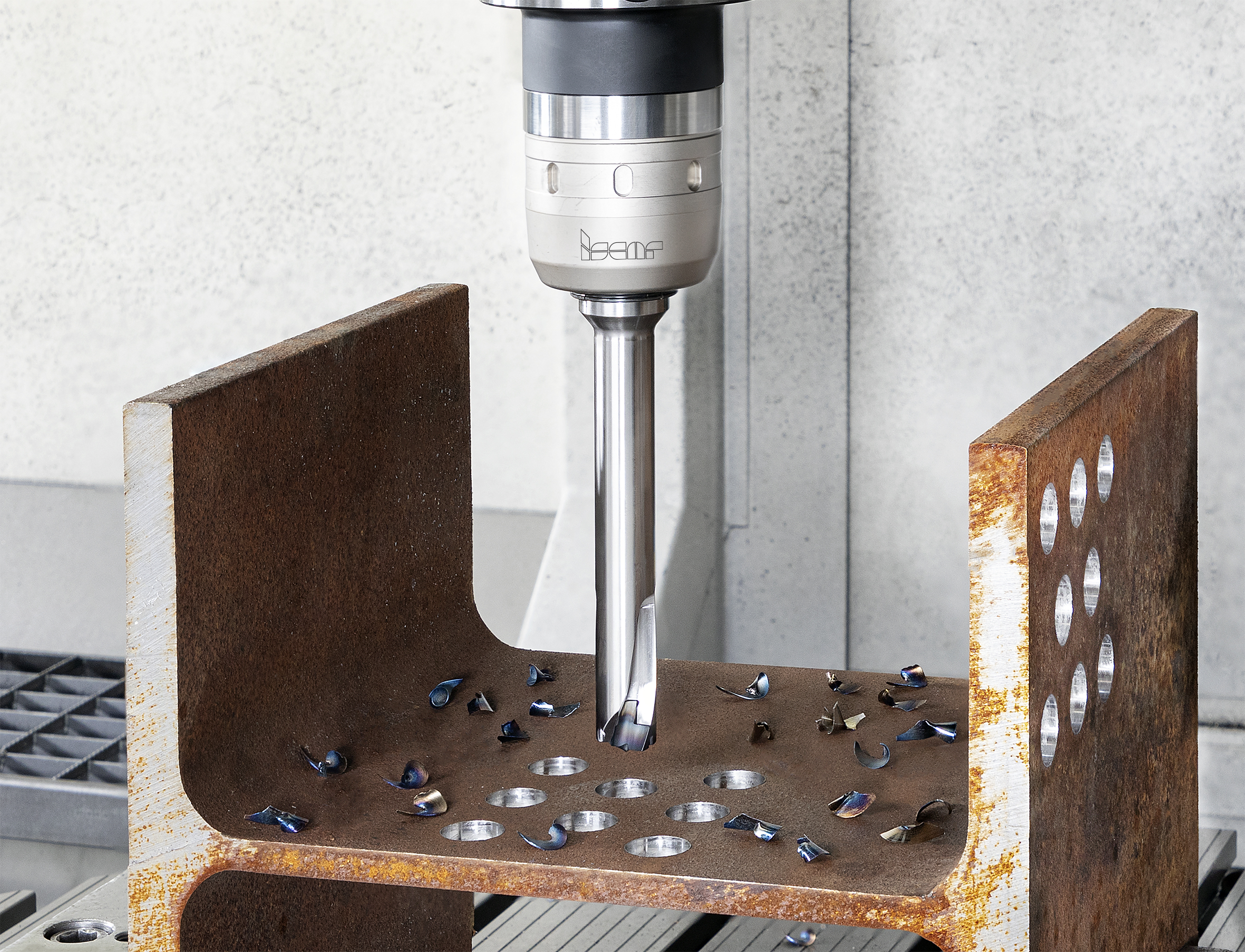 Steel construction beams play a crucial role in building structures and frameworks, requiring the drilling of numerous holes prior to assembly. However, the clamping mechanisms on machines often lack rigidity, posing a challenge for drilling tools. To address these limitations, it is essential for drilling tools to have an adaptive design that compensates for non-rigid conditions, and optimal drilling performance. Currently, finding an efficient drilling tool for beams is a top priority. ISCAR has developed a new solution (Fig. 1) based on the-established SUMOCHAM concept of assembled tools with an exchangeable drilling head made from tungsten carbide. This solution incorporates three key elements: cutting material, cutting geometry and body design. The specially developed PVD-coated IC954 carbide grade offers exceptional resistance to deformation. The new IHP-BP exchangeable head features a dedicated-centering cutting edge, ensuring secure material penetration, while the sharp corners of the head effectively prevent the formation of burrs. Additionally, the reinforced drill body enhances dynamic rigidity. As a result, the new SUMOCHAM product provides an effective solution for drilling relatively thin beam sections under unstable conditions.